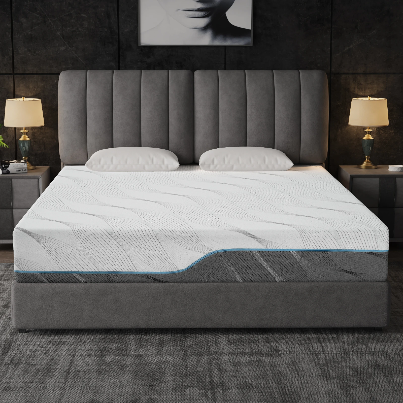 【Premium Memory Foam Mattress】: Mattress in a box with premium gel foam+bamboo memory foam, fiberglass-free, 2 sides design cover, and medium firm to extra firm for back pain, low motion transfer. Experience the luxury of high-quality mattresses, and enjoy a deep and restful sleep experience.